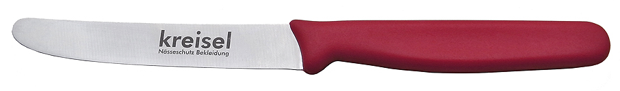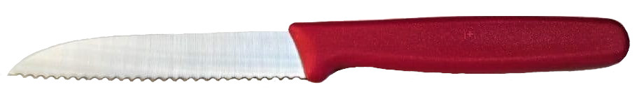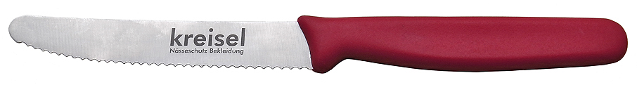 | Klingenlänge 8 cm, Griff rot, mit Wellenschliff |