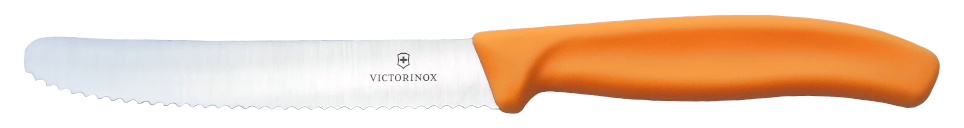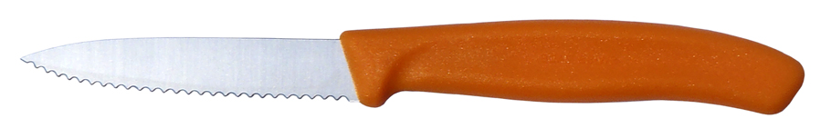 | Klingenlänge 8 cm, Griff orange, mit Wellenschliff |