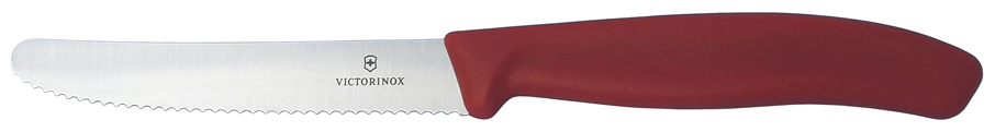 | Klingenlänge 11 cm, Griff rot, mit Wellenschliff |