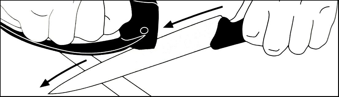 - 2 bis 4 mal mit kräftigem Druck über die Schneide ziehen